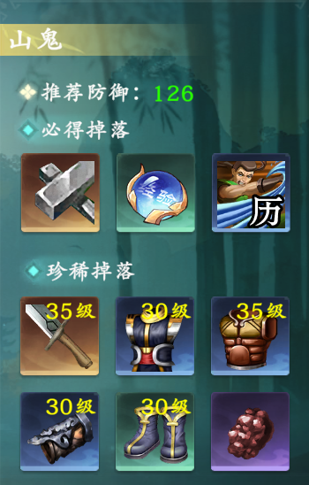 珍稀掉落:30-35级武器、衣服、内甲、护手、鞋子、强化石