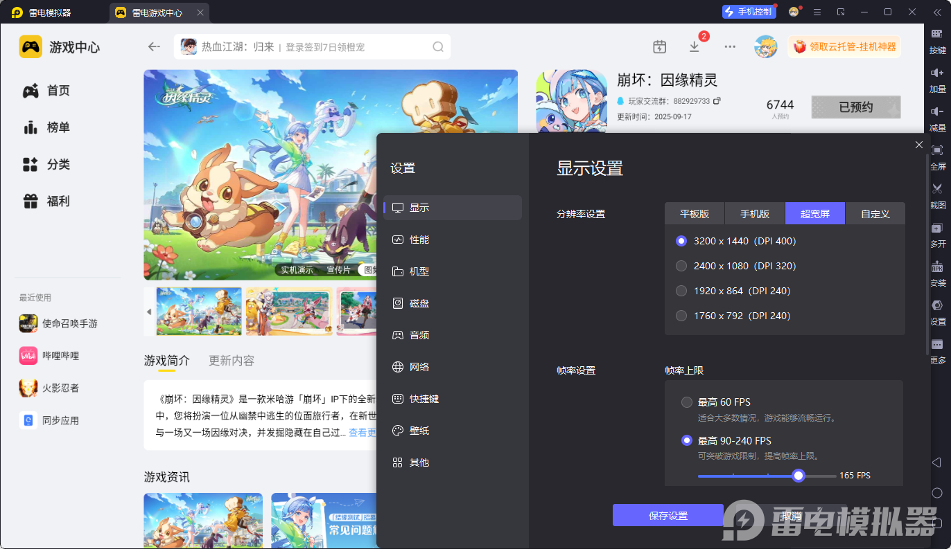 雷电模拟器——崩坏因缘精灵电脑版的好帮手