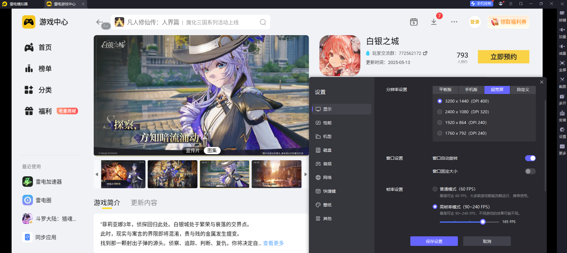 二、用雷电模拟器玩《白银之城》:操作与画面双重加分