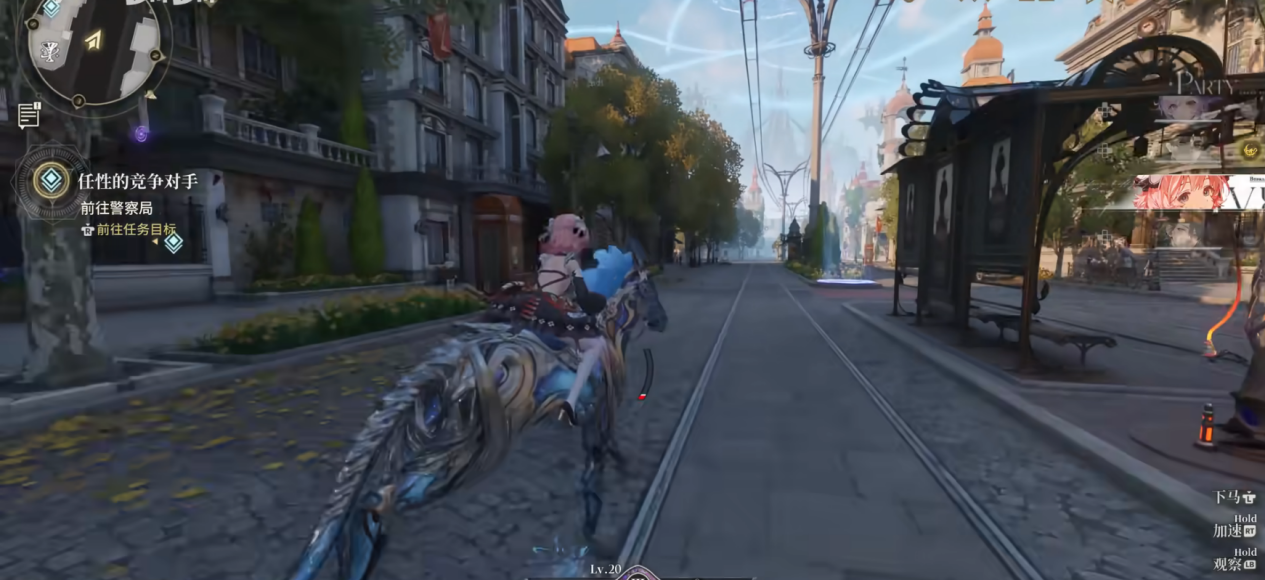 考试起始于主城中央区域的骑乘向导NPC处,接取任务后,赛道就在城市核心区。起跑后,全程按住加速键,一刻都不能松懈。一旦松开,累计时间会大幅超出系统容许范围,直接导致考核失败。在这段直道上,保持恒定加速状态是关键,让飞马如离弦之箭般飞。