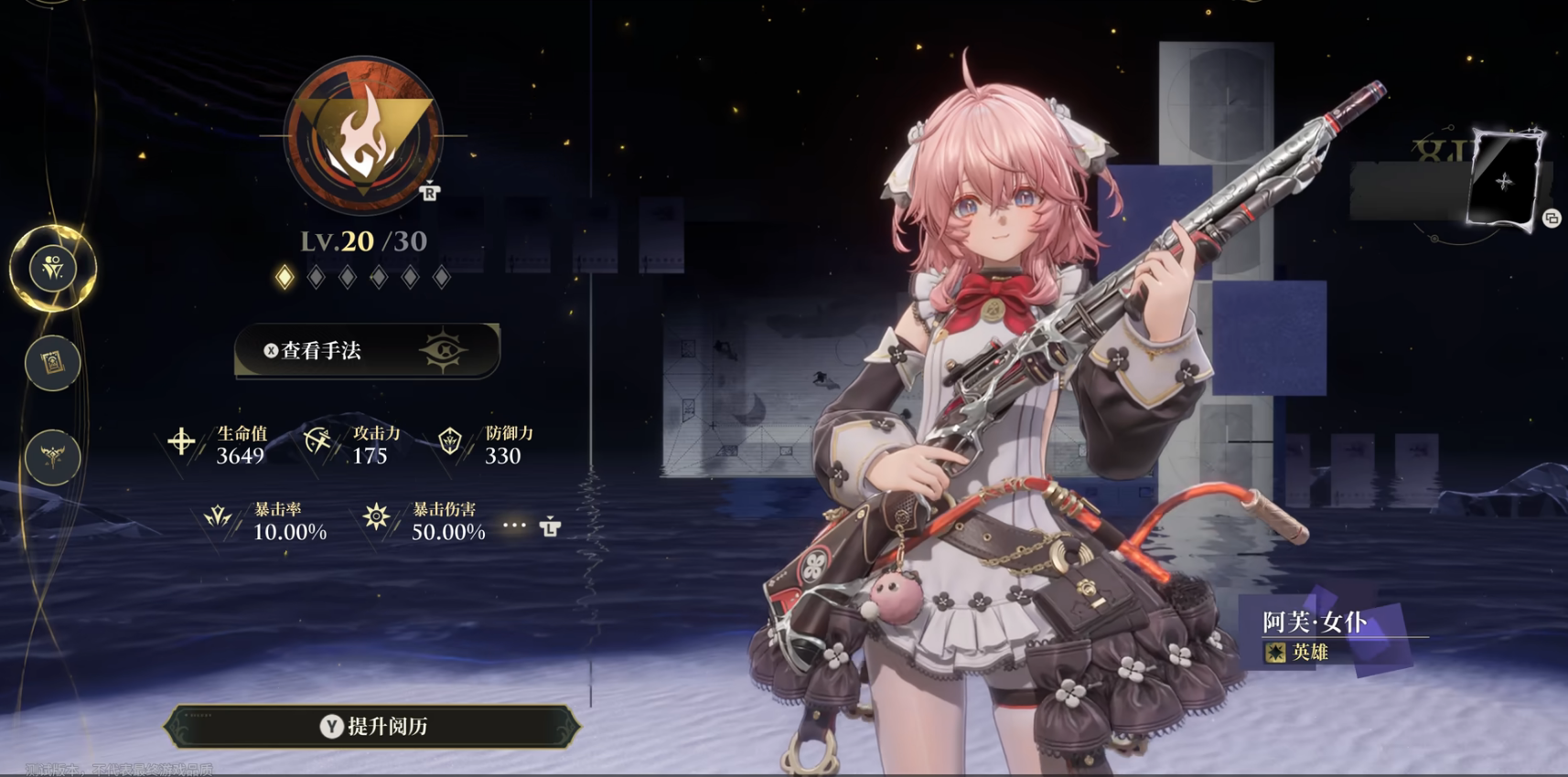 女仆阿芙的武器虽以远程霰弹射击为主,但其近战形态“枪托重击”同样不容小觑。当敌人突进至3米内时,阿芙会自动切换战斗模式:挥动霰弹枪枪托进行三次连击,第三次攻击附带火属性爆炸效果,范围伤害达2.5米。首测数据显示,在“深层思维”挑战玩法中,近战形态的输出占比达28%,尤其在狭窄地形中表现优于远程射击。