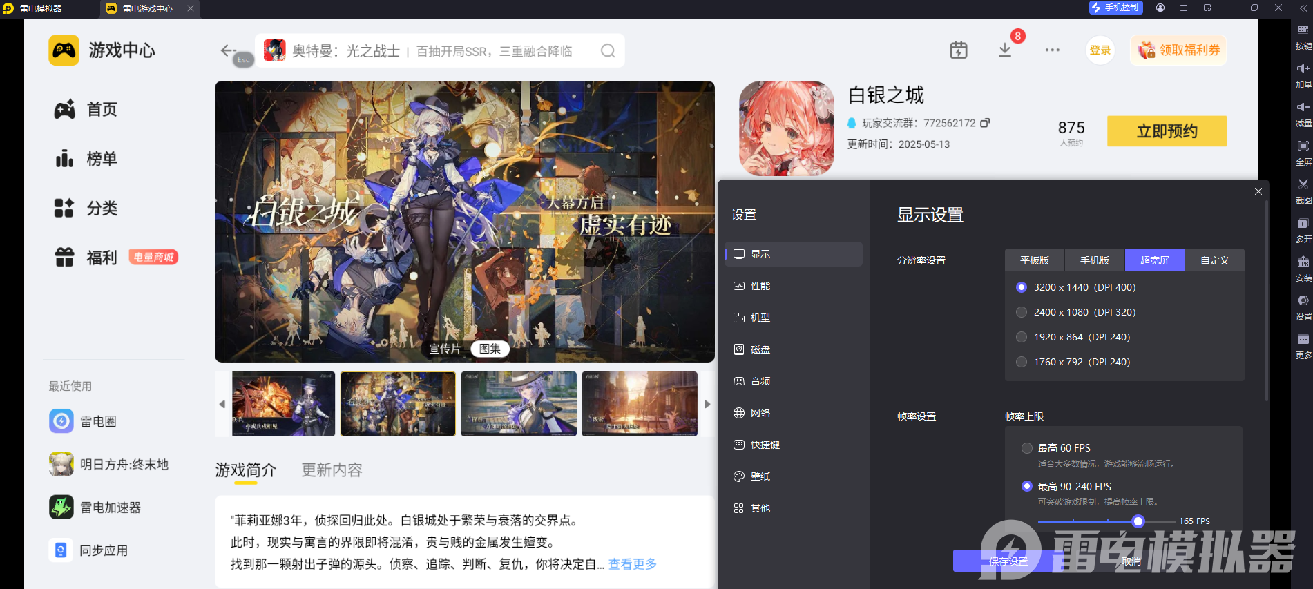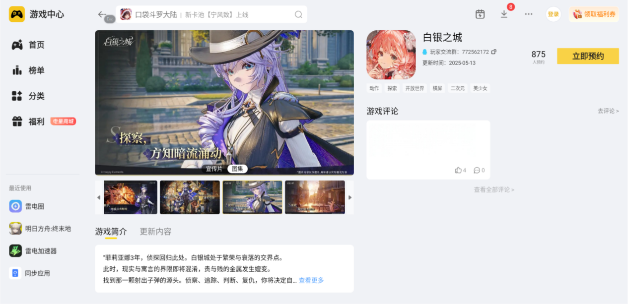 白银之城声望系统为《白银之城》手游增添了丰富的养成乐趣,而雷电模拟器则从操作和画面两方面,为声望提升提供了有力支持。无论是追求高阶声望奖励,还是享受沉浸式冒险,雷电模拟器都能让你在《白银之城》中获得更好的游戏体验,快去开启你的声望进阶之旅吧!