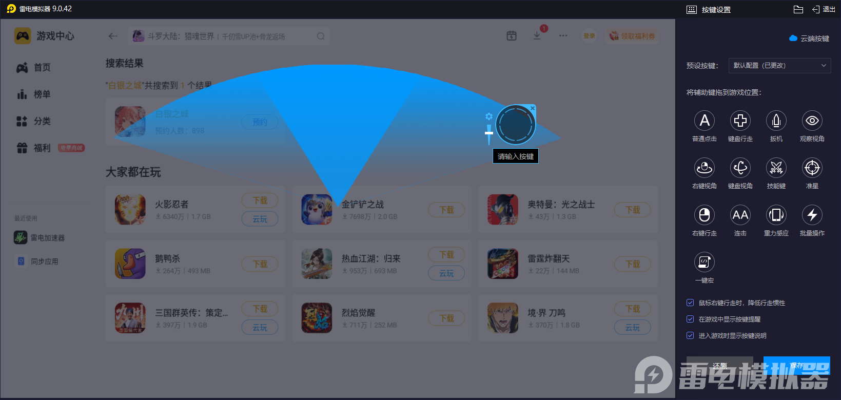 此外,雷电模拟器可以让大家去自定义键盘映射,这样我们就能快速的把火铳射击、武士刀连招、钩锁移动等复杂操作设置为快捷键,这种设置不仅减少误触,更让玩家在战斗中从容不迫地处理各种情况,实现无缝衔接的打击快感,对于一些连招的使用也会更加的顺手哦。