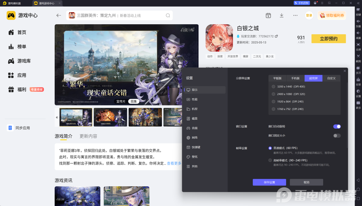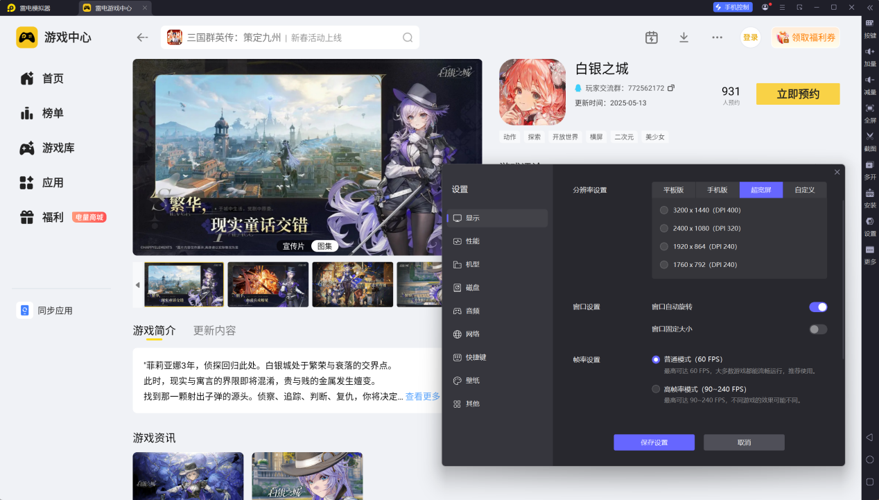 雷电模拟器针对白银之城的3D场景和特效进行了深度优化,支持在中高配置电脑上稳定运行高画质模式,避免手机端因硬件限制导致的卡顿、掉帧问题。通过虚拟显卡技术提升图形渲染效率,使游戏中的光影效果、角色动作更加细腻流畅。