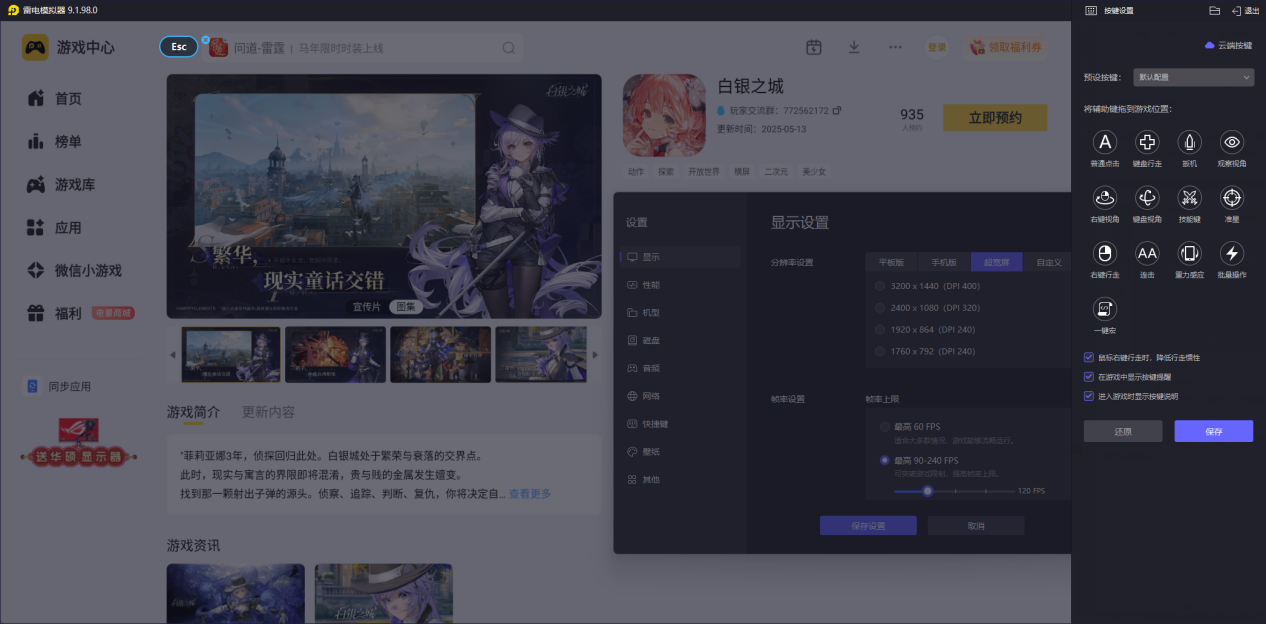 键鼠自定义操控让探案、战斗更精准,钩索飞跃、技能释放更跟手,长时间游玩也更轻松。无论是探索地图还是推进剧情,雷电模拟器都能大幅提升整体体验,轻松解锁白银之城的端游级感受。