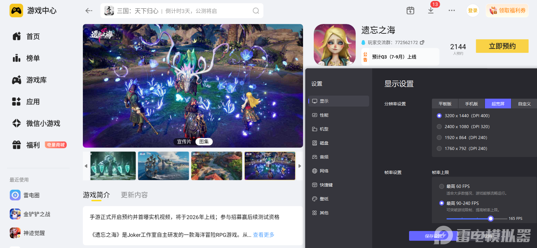 想要获得更舒适的遗忘之海游戏体验,在电脑上使用雷电模拟器游玩是很不错的选择,电脑端的游玩状态相比手机端有着全方位的提升,能让玩家更沉浸地感受游戏的各项外观内容与玩法。