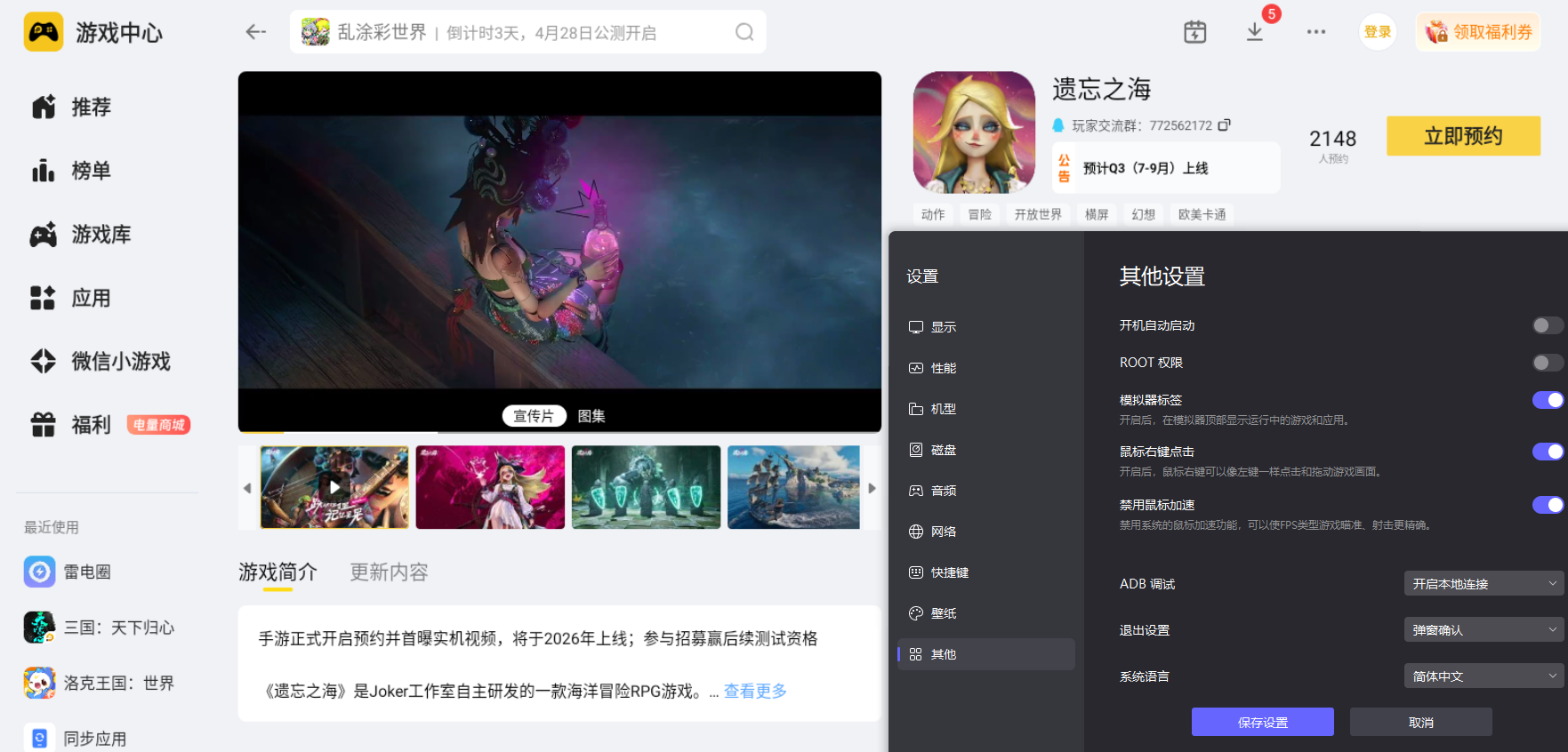 其实,大家可以选择在电脑上借助雷电模拟器游玩遗忘之海,能大幅提升整体游玩体验,长时间探索海域、挑战各类boss的过程,都会变得更加轻松舒适。