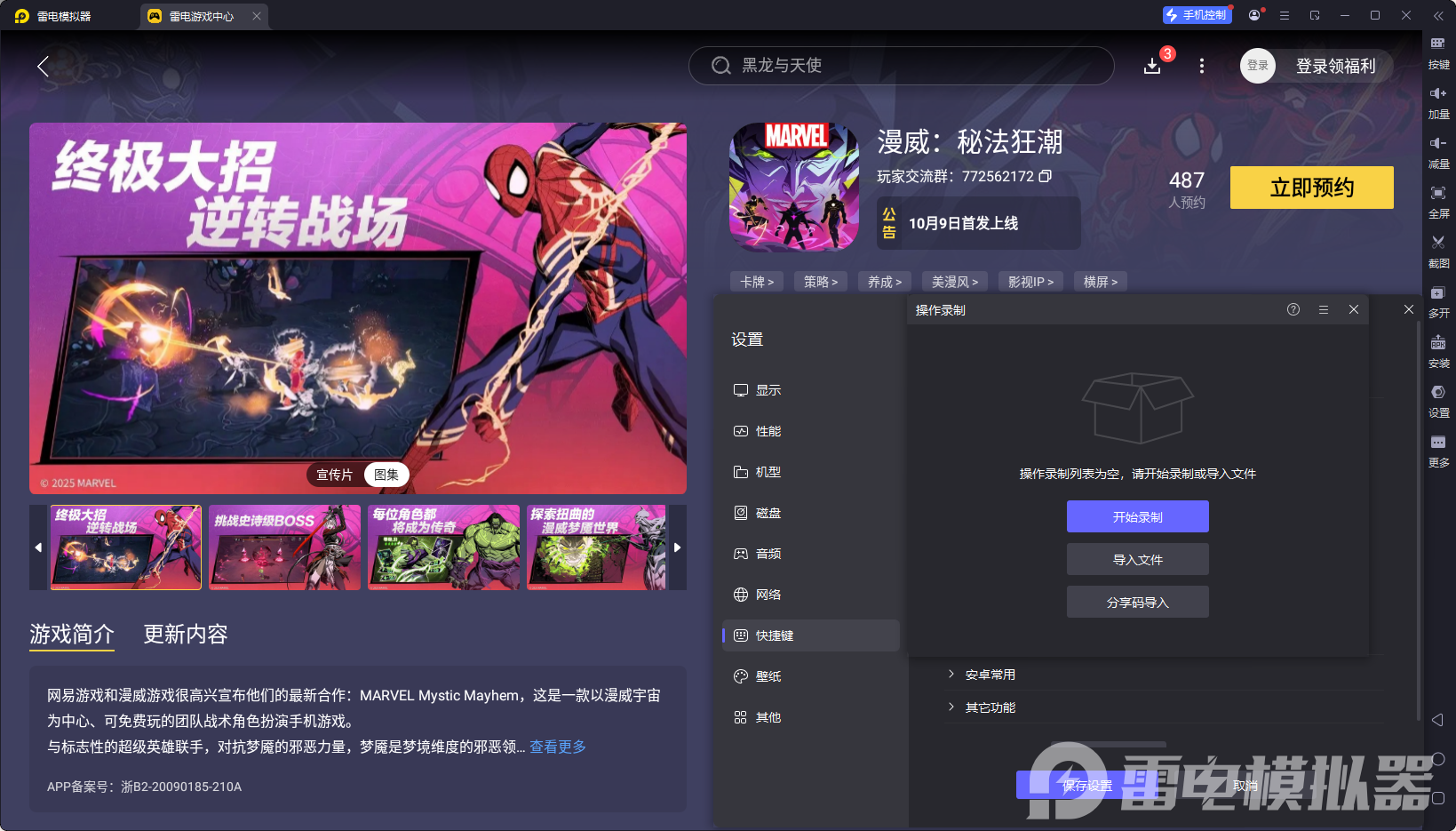 好了,漫威秘法狂潮最强阵容就给大家介绍到这里啦。阵容搭配需围绕“角色联动+机制克制”展开。大家可以在官网下载雷电模拟器,然后在雷电中心搜索漫威秘法狂潮,点击预约即可。在10月9日游戏上线的时候,雷电模拟器会自动帮大家下载,非常的方便。最后建议玩家根据自身英雄池与目标场景灵活调整,同时关注版本更新与角色平衡性改动,及时优化阵容配置。