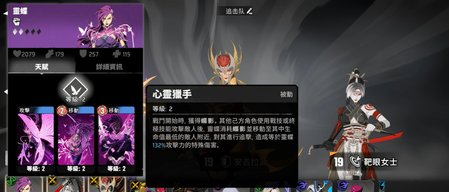 灵蝶是启动关键,带“破茧成蝶”高光和充能神器,能快速叠攻击,还能触发追击效果;靶眼女士是收尾的,带“雇佣刀客”和“午夜手枪”,暴击率和暴击伤害都拉到最高,单点伤害直接溢出来。
