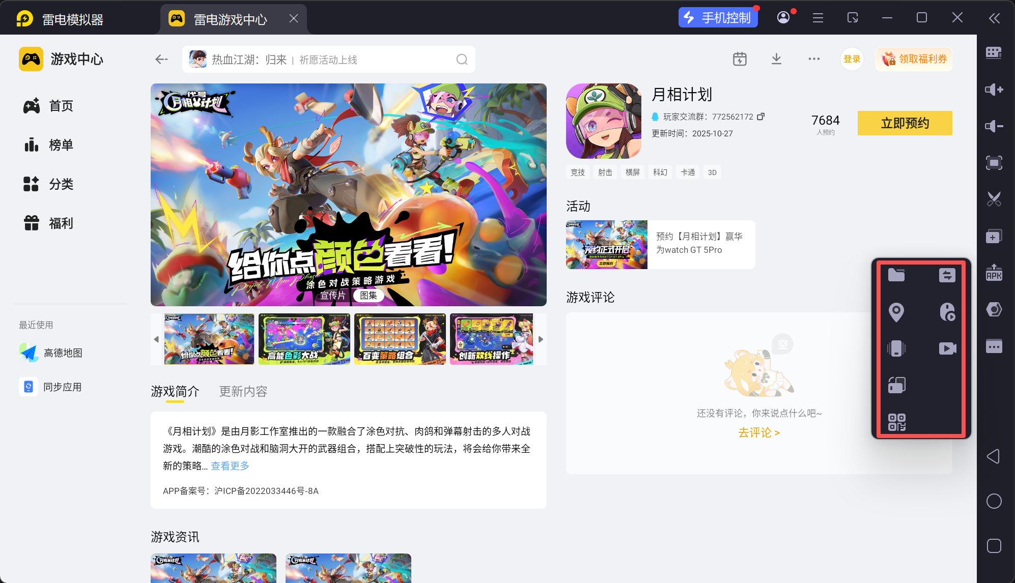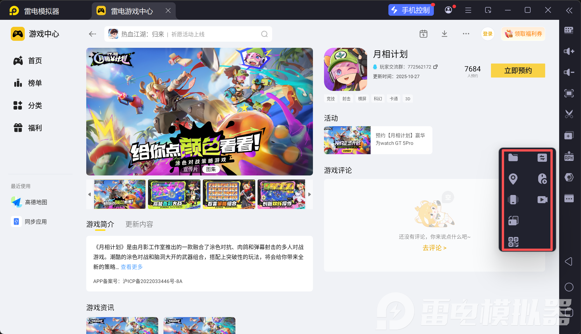 月相计划是一款非常考验操作和策略的竞技性游戏,玩家们不妨使用雷电模拟器在电脑大屏上进行操作,更容易把握战场的局势。同时雷电模拟器的165帧高刷显示也是竞技性游戏的好帮手,无论是武器商店抢装,还是对战时候的操控,都可以快人一步。