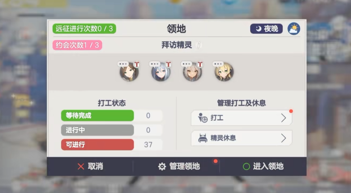 打工玩法需要指派精灵上岗执行任务,执行过程中会持续消耗精灵体力,体力归零后需将精灵移入休息栏恢复。休息栏的数量会随着领地等级提升而增加,等级越高能同时恢复的精灵越多,轮换效率也会大幅提高。