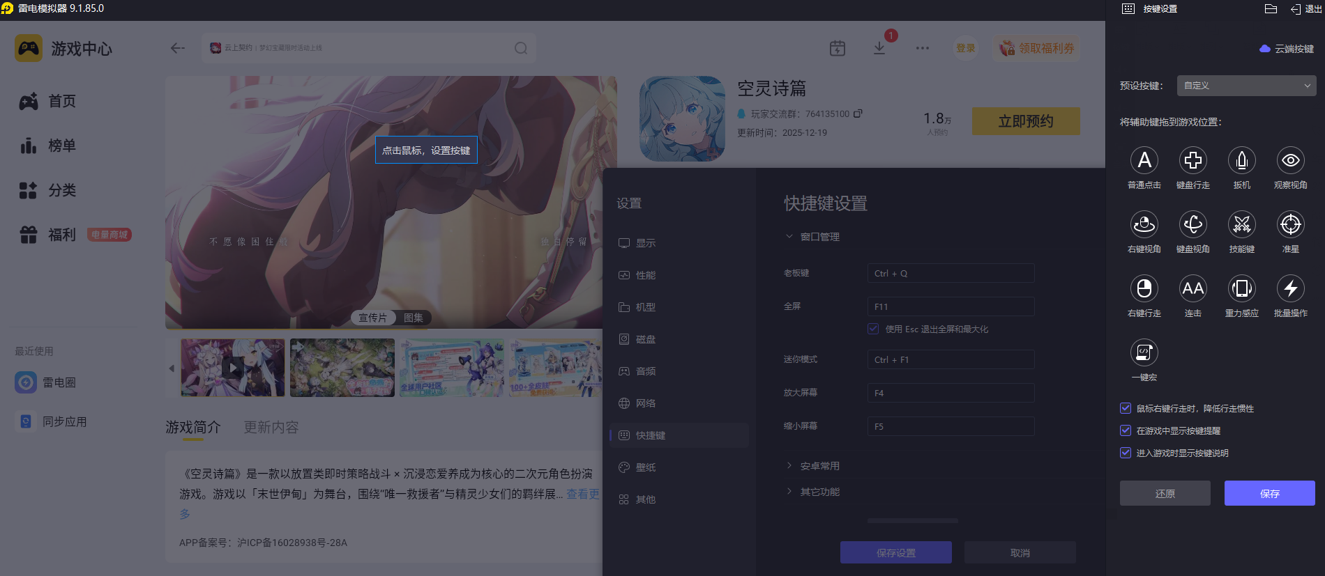 打工玩法需要频繁进行派遣精灵、切换任务、查看奖励等重复操作,雷电模拟器的键鼠映射功能能自定义按键布局。玩家可以将精灵派遣、休息轮换等常用操作设置成快捷键,鼠标点击精准度更高,不用反复用手指戳屏,长时间做日常打工任务也不会觉得累,大幅提升操作效率。