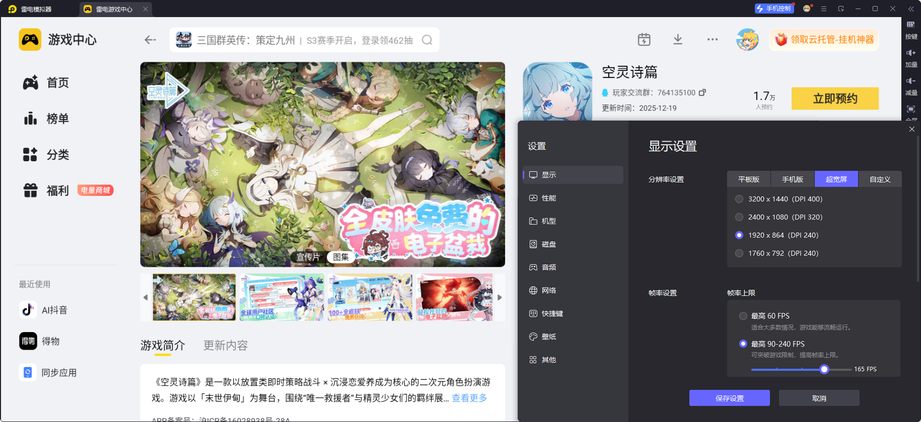 当我们精心组建好空灵诗篇开荒队伍后,自然希望能在游戏中获得更极致的体验。毕竟,清晰的画面能让我们更好地欣赏游戏中的奇幻场景,流畅的操作能让我们在战斗中更加得心应手。而雷电模拟器,就能为我们带来这样的惊喜,将游戏体验提升到一个全新的高度。