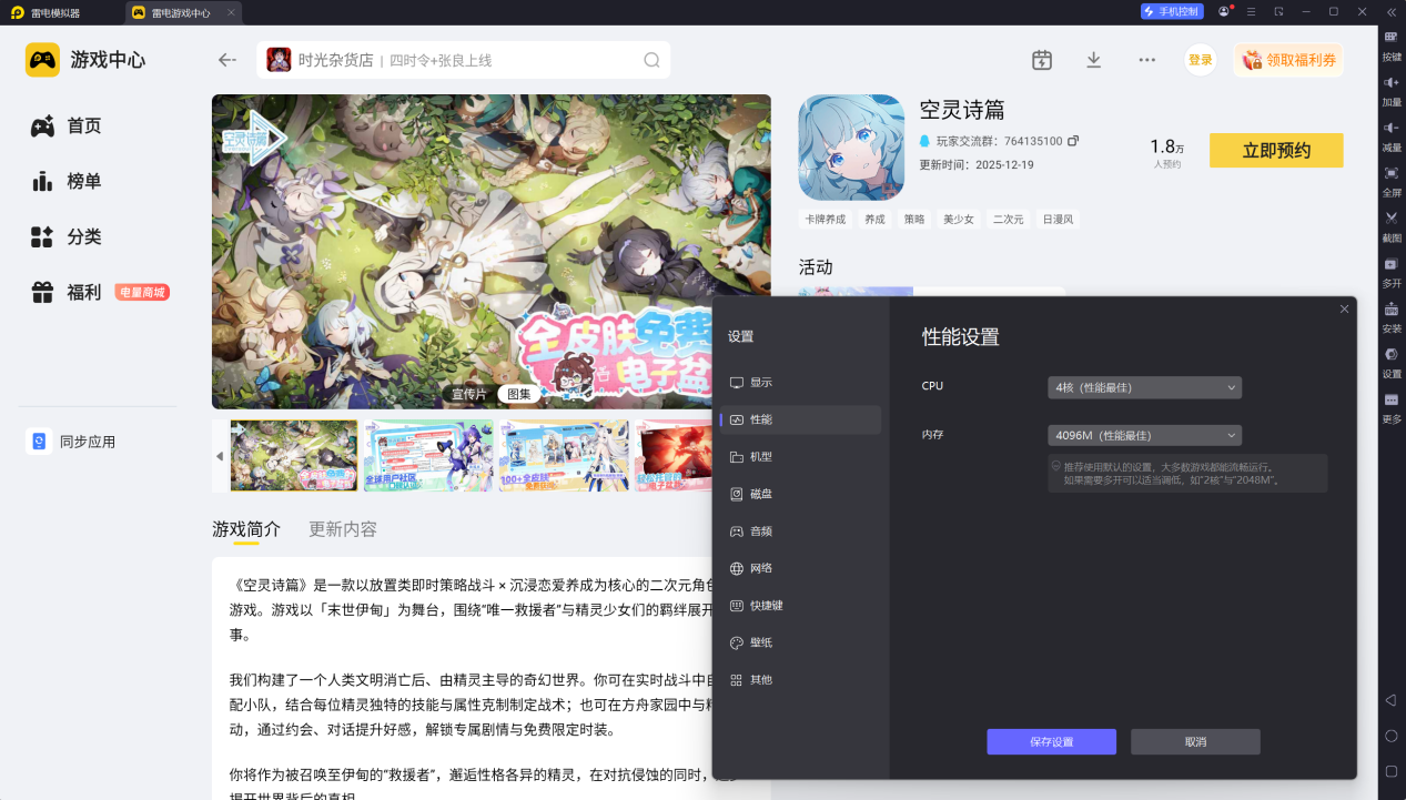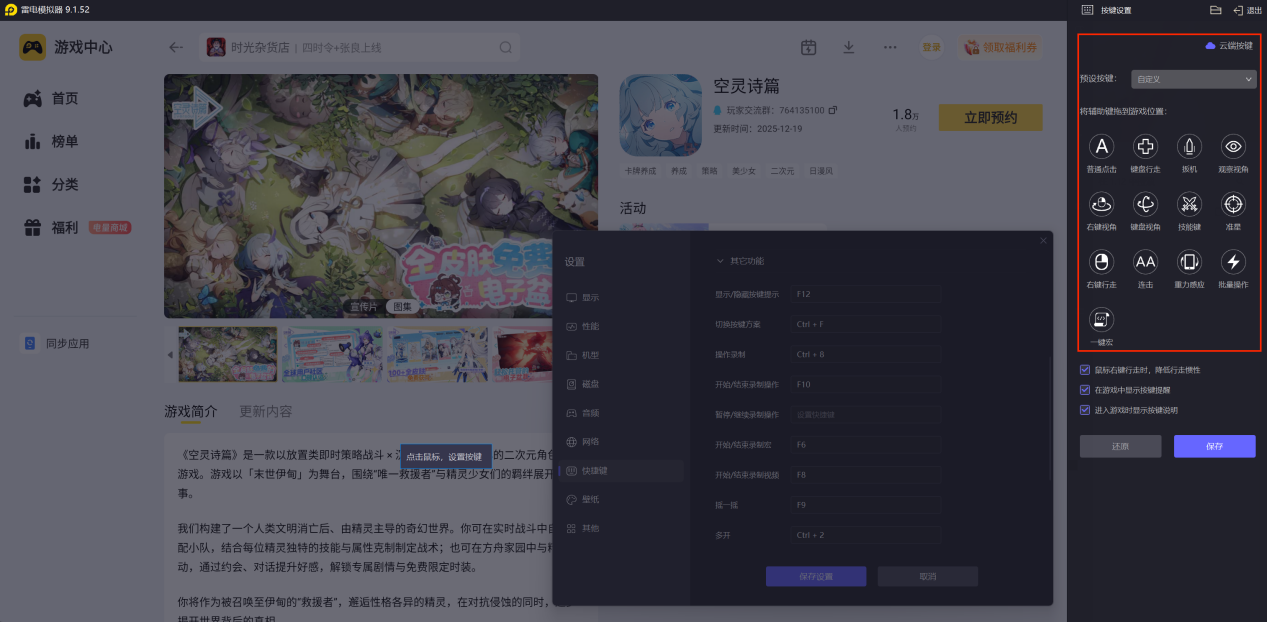 性能稳定流畅:雷电模拟器能为空灵诗篇提供更稳定的运行环境,有效减少手机端常见的卡顿、掉帧现象,保证游戏过程的流畅性,即使是复杂场景或多角色同屏时也能保持良好表现。