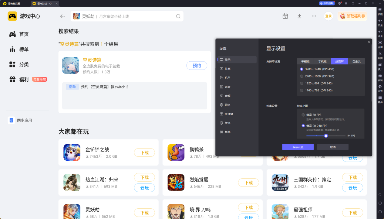 首先是高清大屏优势,空灵诗篇角色立绘精度极高且配备3D建模,雷电模拟器支持4K高清画质输出,能清晰展现角色互动时的细节神态与剧情CG,无论是约会场景的光影效果,还是好感剧情的文本展示,都能带来更强的沉浸感,避免移动端小屏导致的细节遗漏。