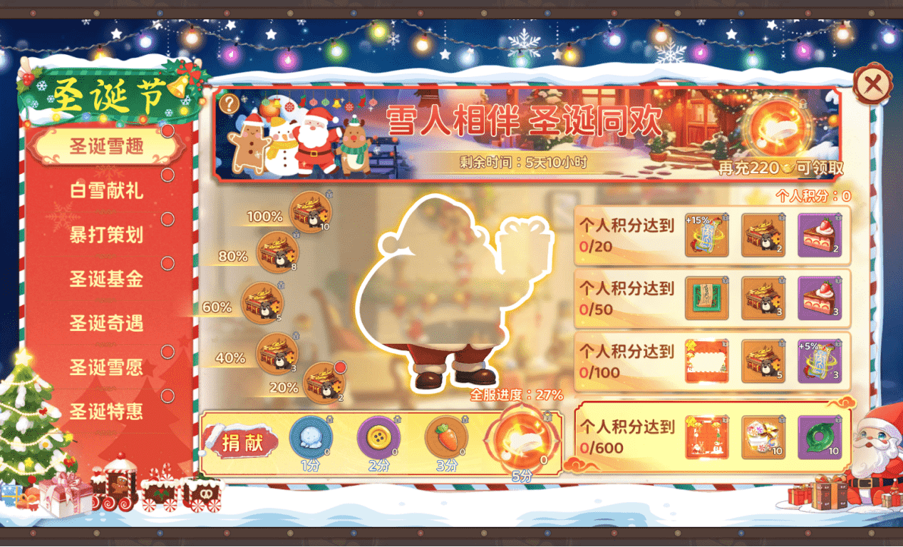 捐献指定道具即可获得对应积分。个人捐献积分累计达到指定档位,可领取丰厚奖励;同时,全服积分进度达成指定目标后,所有玩家均可共享阶段进度奖励。