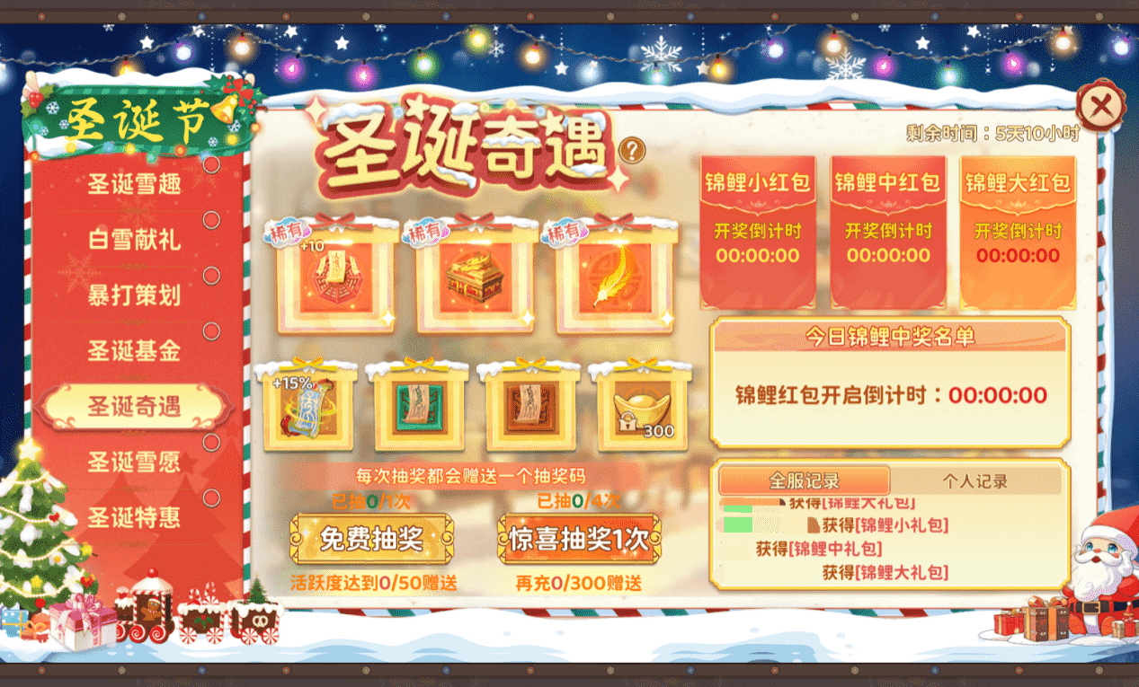 提升活跃度即可免费抽奖!每次抽奖都会额外赠送一个抽奖码,锦鲤红包每日发放,好运连连不打烊~