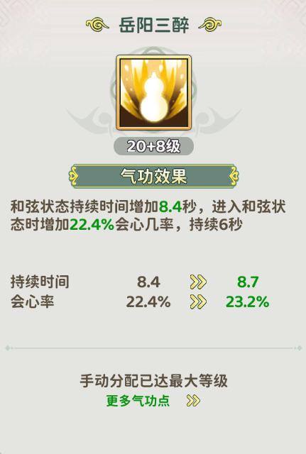 乐师技能有时候会“音波偏移”(就是打不中!),尤其是遇到那种闪避高的怪,贼恶心!这个技能能加武功攻击,还能提高命中,让你拳拳到肉,再也不怕打空气了!