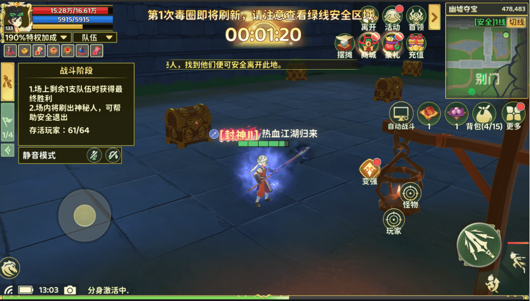 2、击杀怪物或玩家可掉落战利品宝箱,开启可拾取局内道具。局内道具分为可掉落和不可掉落的,角色死亡和中途离开时将掉落特殊背包内所有可掉落的道具。