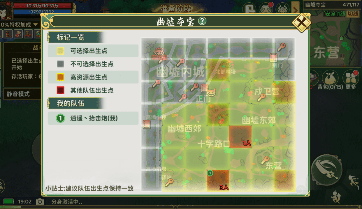 2、未选择出生区域的队长将随机选择出生点,未选择出生区域的队员将跟随队长出生;