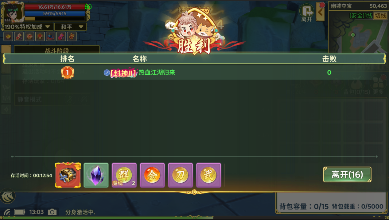 2、结束阶段离开场景时可获得背包内所有可带出道具,可带出道具会自动转化为对应的普通道具。