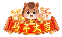 卡通小马笑靥盈盈,棕褐色鬃毛随风扬起,身旁烟花绚烂绽放,怀抱金灿灿的元宝,下方红色卷轴上「马年大吉」四字醒目。称号整体以红金配色喜庆热烈,传递出浓浓的年味儿,寓意新的一年财运滚滚、平安顺遂,福气满满。
