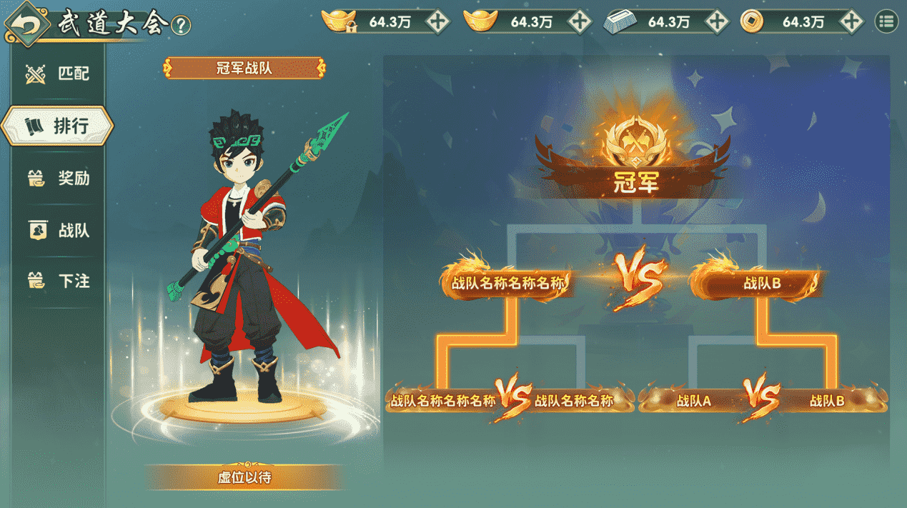 2、胜方战队得3分、负方战队得0分,总场数按照3场2胜的规则(2:0后直接跳过第3场);