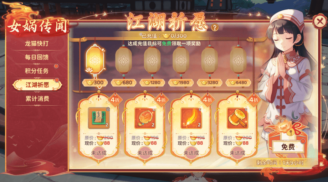 六档奖励尊享专属折扣,达成目标即可自由选好礼,更有额外免费奖励等你领取。祈愿回馈丰厚,让每一份投入都物超所值。