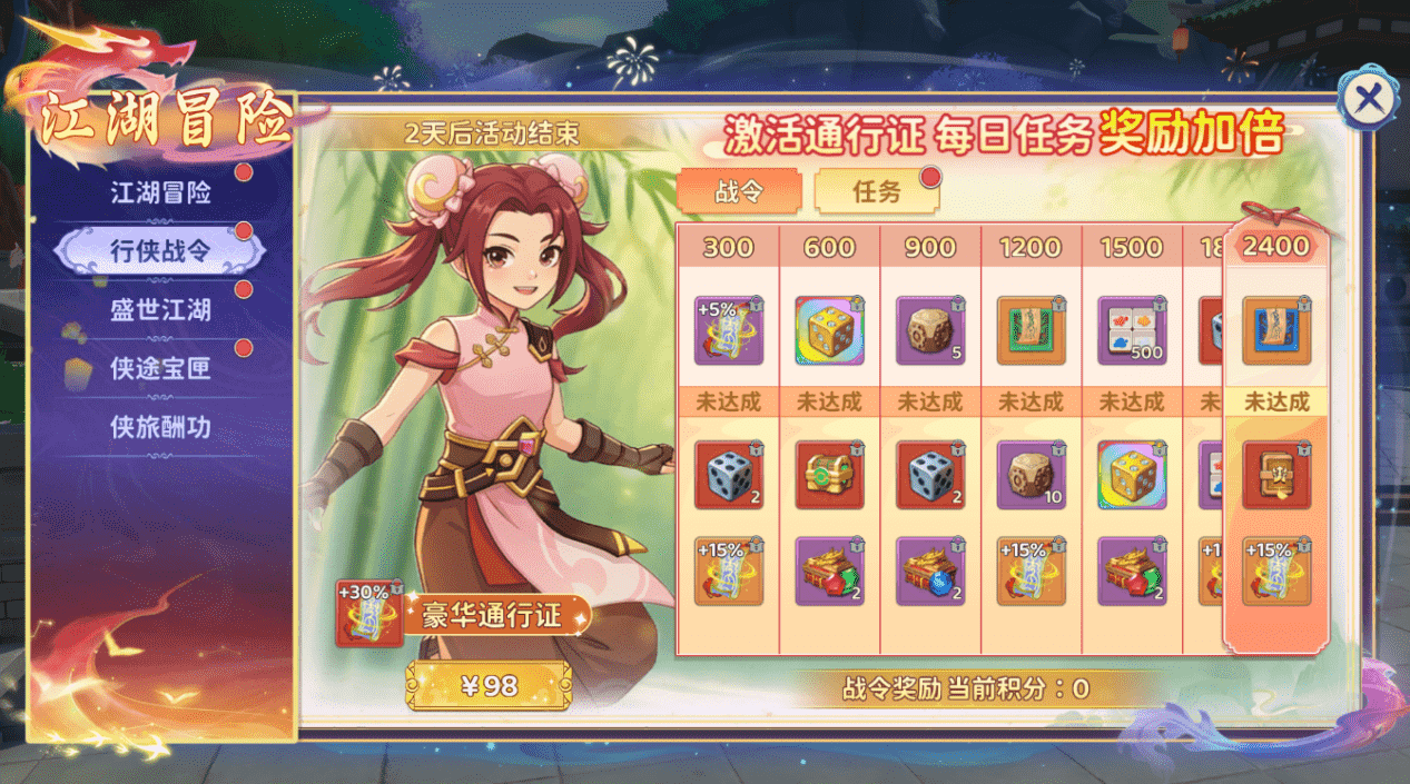 每日完成任务免费领取好礼,激活豪华通行证还有大奖等你!
