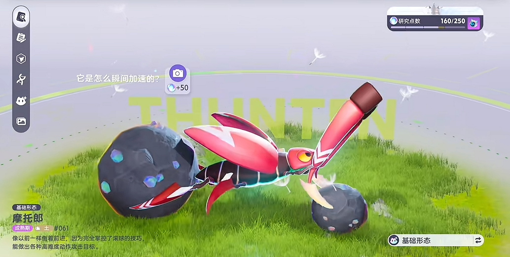 滚滚郎与摩托郎构成了伊莫中一条完整的土属性进化路线,玩法定位从探索辅助逐步过渡到高机动战斗。滚滚郎是初始形态,常与石球形影不离,日常会不停滚动石球,其战斗能力不强,但在探索中具备一定的环境互动价值,更适合作为前期功能型伊莫培养。想要捕捉滚滚郎,建议将游戏时间调整至夜晚,前往青石台下方或凝水成冰地宫右侧区域,这些地点常能遇到成群滚动石球的滚滚郎,捕捉难度较低。随着培养推进,滚滚郎可进化为摩托郎,后者将岩石演化为轮式结构,在岩石地形中拥有极高机动性,技能以高速冲锋和击退为主,实战能力明显提升,适合用于前中期战斗与跑图。
