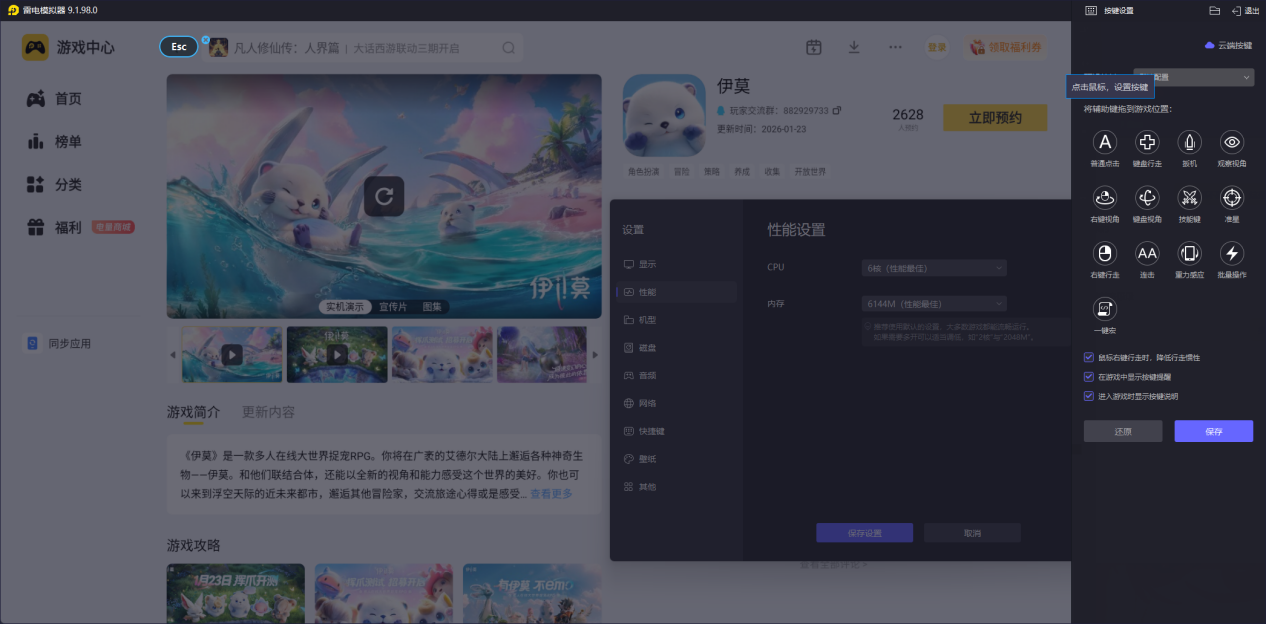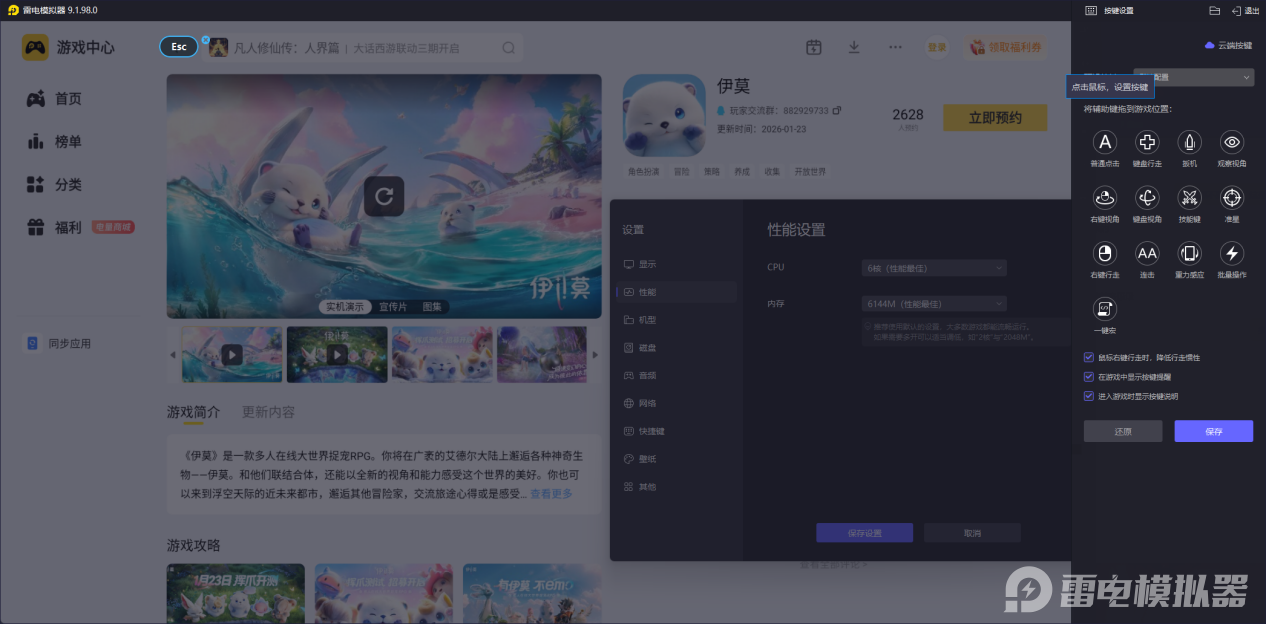 玩伊莫不管是新手开荒的蓬蓬羊百搭阵容,还是火系版本热门阵容,都需要精准的技能衔接和阵容操作,雷电模拟器能完美适配这份操作需求。它为伊莫调试默认按键,自创一键宏能实现阵容的一键布置、一键撤退,不合适还能自行修改且操作简单,键鼠配合让技能释放零误触,火队灼烧叠加、开荒队buff衔接都能精准把控,彻底告别手机操作的卡顿与失误。