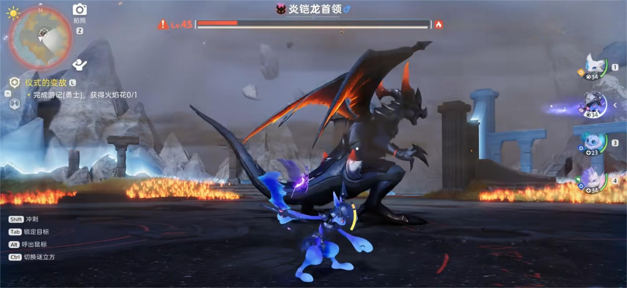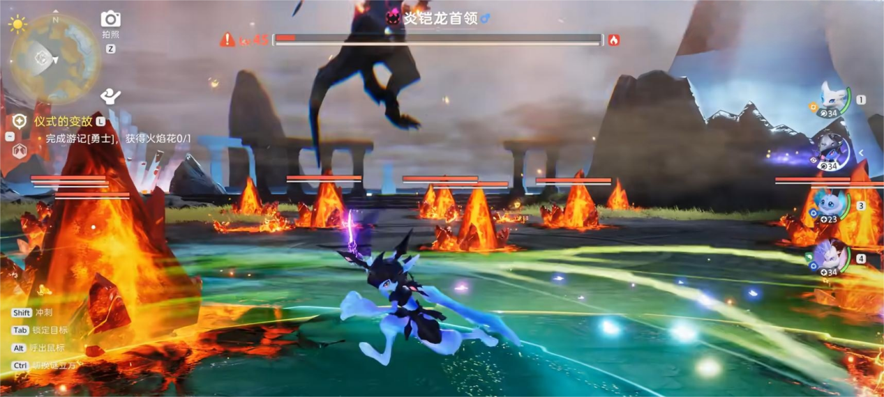 火凯龙的所有攻击都有明显前兆,这是存活的关键。地面出现红色范围提示或火焰虚影时,就是它要释放周身灼烧技能的信号,立刻跑出提示圈就能规避,千万别硬扛持续灼烧伤害。当它头部轻微前探、颈部绷紧,就是要放直线火焰喷射了,这个前摇很容易识别,提前做好走位准备就能躲开。