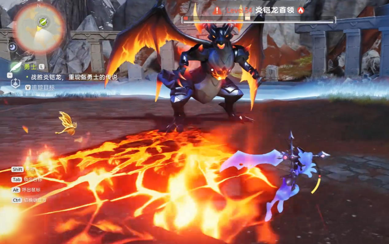 火凯龙的侧面和背后是安全输出区,核心思路是“避其锋芒,攻其软肋”。它释放直线喷火时会站桩不动,这是最佳输出时机,赶紧从侧面绕到尾部或后肢位置,全力输出直到它准备转身再撤离。攻击后肢还有概率打断它的技能前摇,关键时刻能救自己一命。注意它转身速度慢,撤离时不用慌,保持中等移动速度即可。