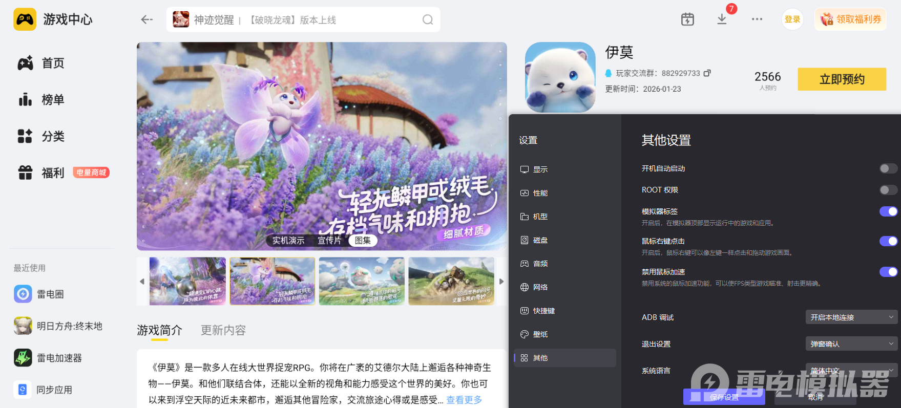 伊莫风系阵容的灵活搭配加上雷电模拟器的操作优化与画面提升,让每一场战斗都更得心应手。风系阵容的协同魅力需要顺畅的操作和清晰的画面来衬托,雷电模拟器正好补齐了这两点,赶紧试试这套搭配,解锁《伊莫》手游的畅快战斗体验吧!