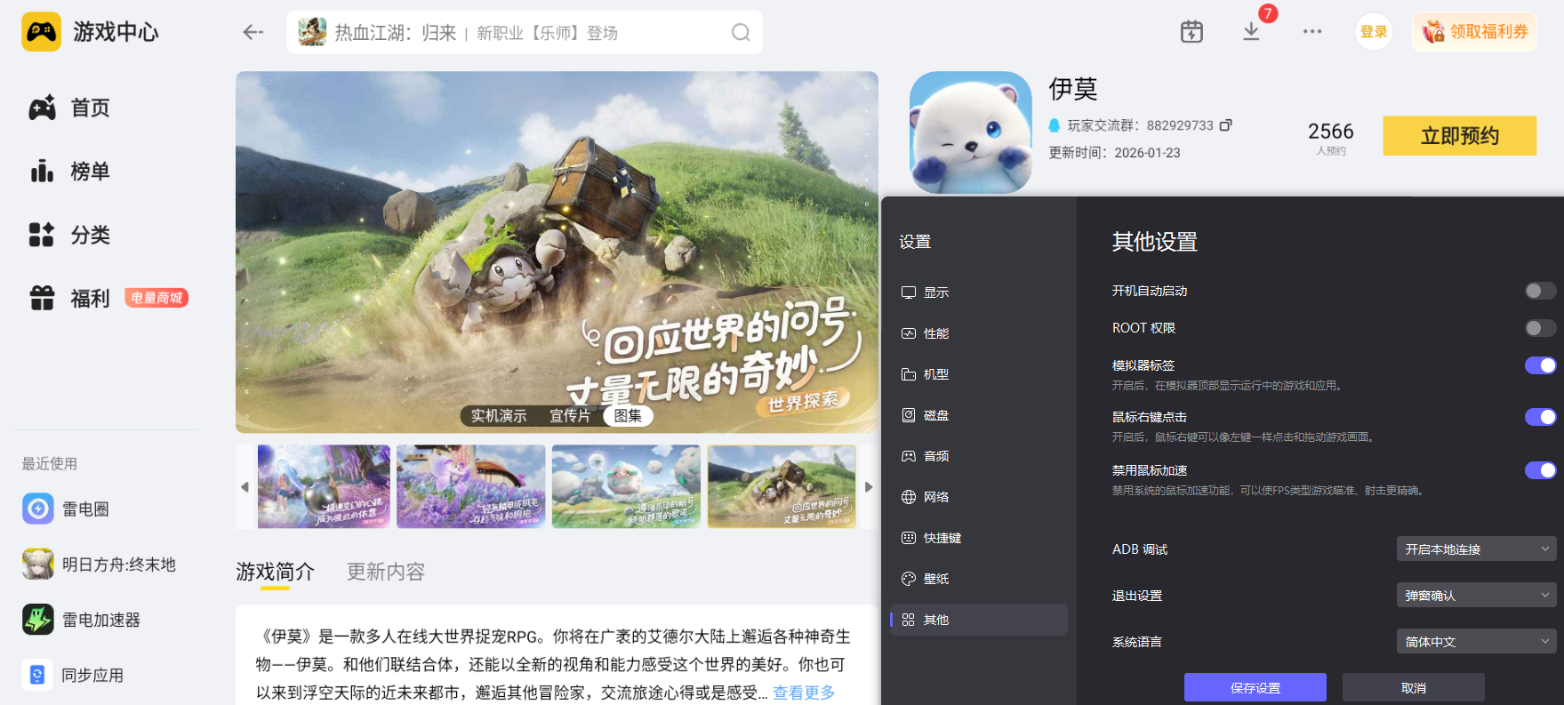 二、雷电模拟器运行“伊莫”优势: