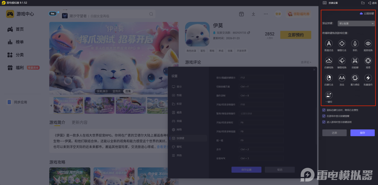 雷电模拟器支持将游戏画面投射到电脑大屏,相比手机小屏幕能更清晰地展示伊莫的场景细节、角色动作和技能特效,尤其在战斗中可快速捕捉敌人位置和技能范围,提升操作精准度与沉浸感。