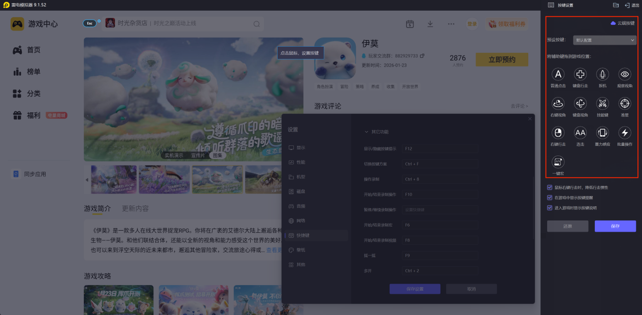雷电模拟器支持键盘鼠标操作,通过自定义按键映射,玩家可将游戏内的虚拟摇杆、技能按钮等设置为熟悉的键盘按键组合,实现更精准、快速的操作。技能释放可通过快捷键瞬间触发,移动控制比触屏滑动更稳定,对于伊莫中需要高频操作或连招释放的角色,能大幅提升操作流畅度和反应速度。