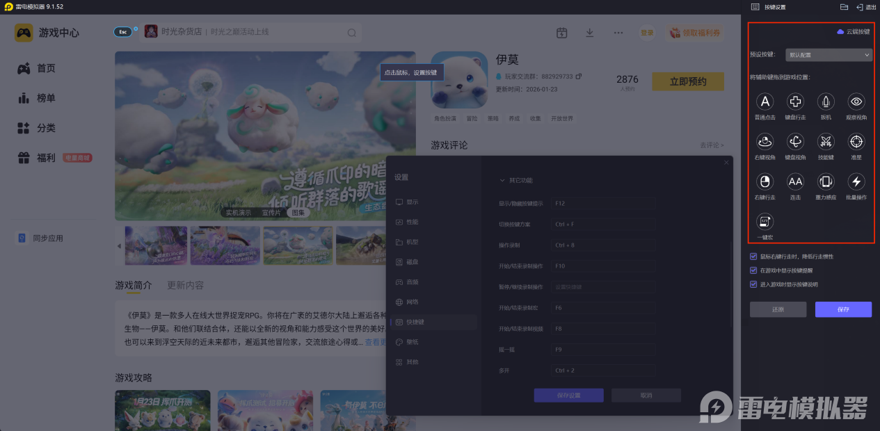 相较于手机小屏,雷电模拟器可在电脑显示器上呈现更大的游戏画面,玩家能更清晰地观察伊莫游戏中的场景细节、敌人动态及技能特效,尤其在复杂战斗场景或需要精准操作的关卡中,大屏视野能显著提升对战场的把控能力,减少因视野局限导致的操作失误。