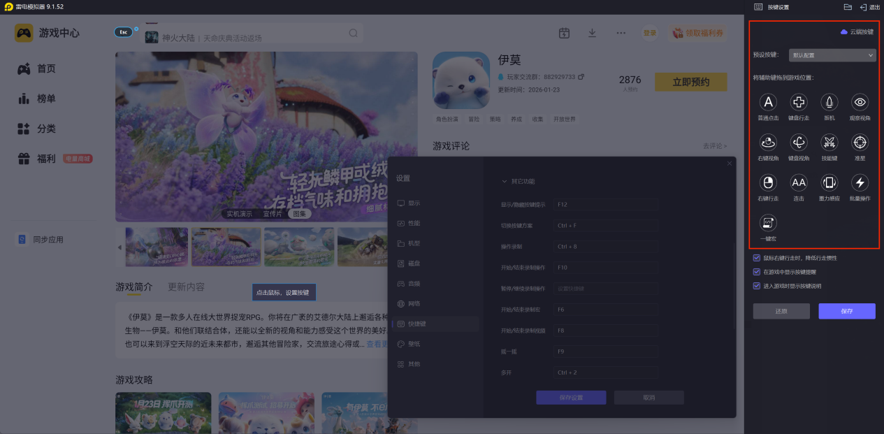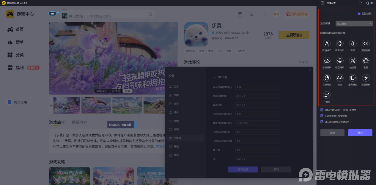 雷电模拟器支持键盘鼠标操作,实现精准操控,走位、技能释放等操作响应更快,尤其在伊莫战斗场景中可完成更复杂的连招和微操作,避免手机触屏操作的误触问题,提升操作流畅度与战斗效率。