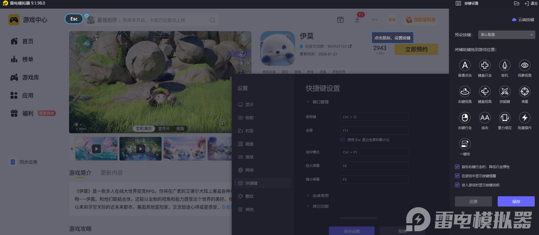 雷电模拟器的键鼠映射功能让家园操作更顺手,种植时的播种、浇水、施肥,只需通过鼠标点击就能精准完成,比触屏操作更精准。还能自定义键位,将重复操作设置为一键触发,比如批量收割作物、快速布置家具。对于需要频繁操作的种植养护和家园搭建,键鼠操作能大幅提升效率,让打理家园更省心。