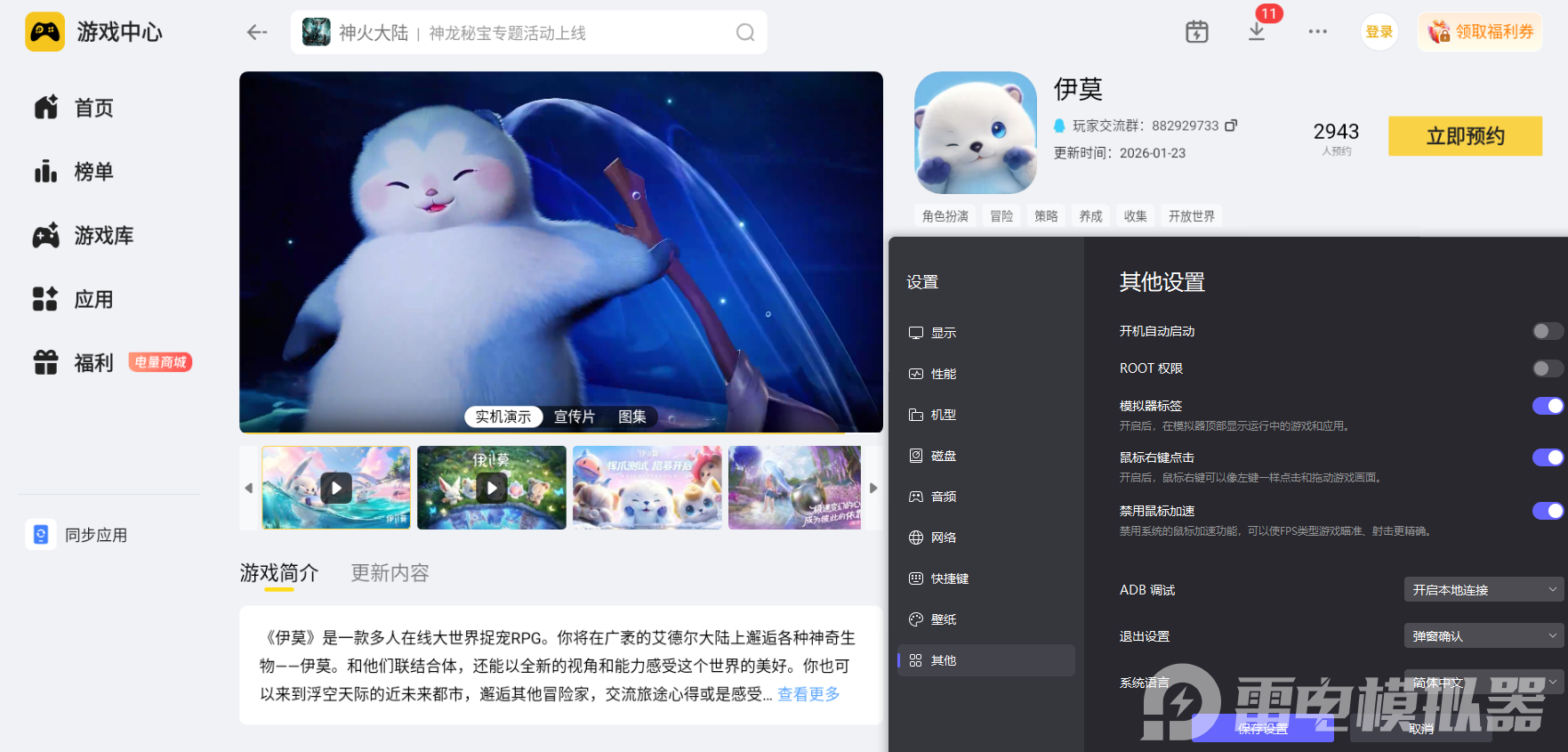 伊莫家园的玩法丰富又治愈,从自由搭建专属空间到体验种植收获的乐趣,再到和伊莫伙伴协作经营,每一项内容都能带来满满的成就感。用雷电模拟器体验,更能凸显家园玩法的细节与便捷,不妨尽情发挥创意,打造独一无二的伊莫家园,在田园与建设的乐趣中,开启专属的游戏之旅。