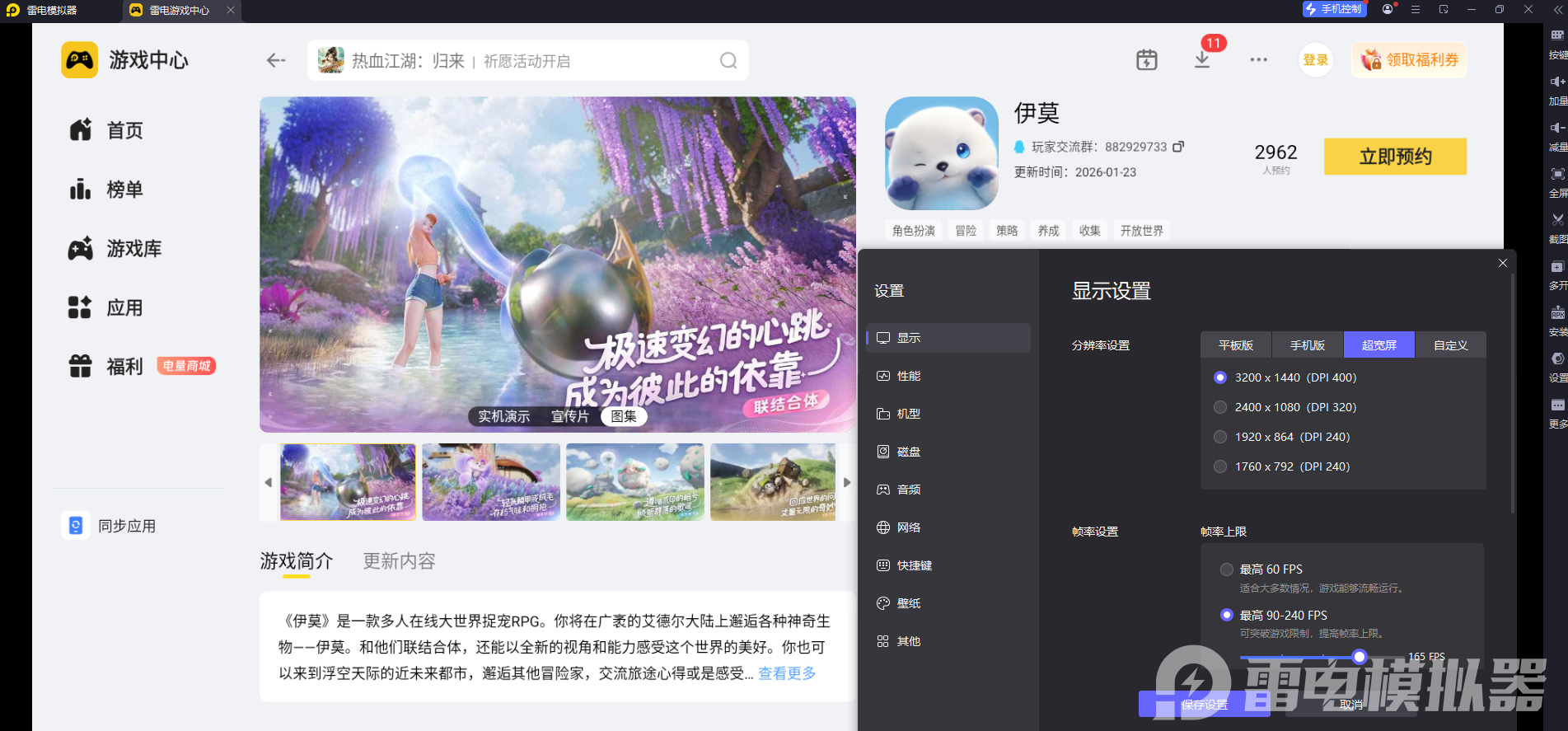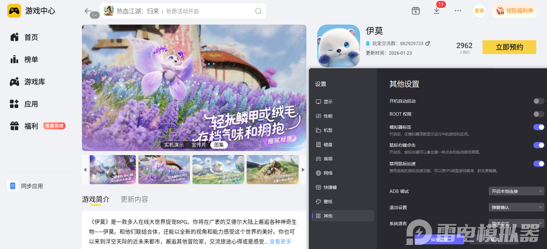 成功获取伊莫莲冠龙后,想要更好地体验它的战斗表现,画面呈现至关重要。用雷电模拟器玩《伊莫》,4K大屏能清晰展现莲冠龙的外形细节,不管是进化后的羽翼纹理,还是战斗时的技能特效,都能看得十分清楚。同时,云上草原的荷叶、水域等场景也会更鲜明,让你在寻找莲冠龙头目、把握进化位置时,轻松看清周围环境,避免因场景模糊错过关键时机。