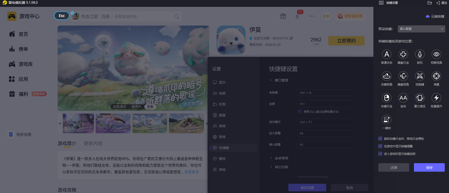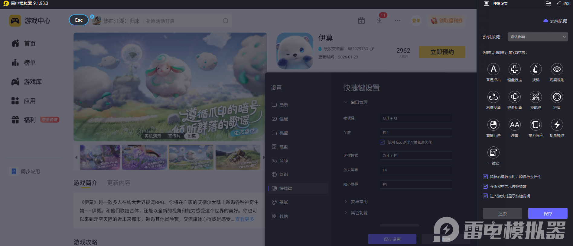 在获取和使用伊莫莲冠龙的过程中,灵活操作能大幅提升效率。雷电模拟器支持自定义键盘映射,你可以根据自己的习惯设置移动、攻击、切换伊莫的按键。击败莲冠龙头目时,能精准躲避BOSS的推开技能,避免落水;进化环节中,也能快速切换顽皮鱼,不错过短暂的进化时间窗。