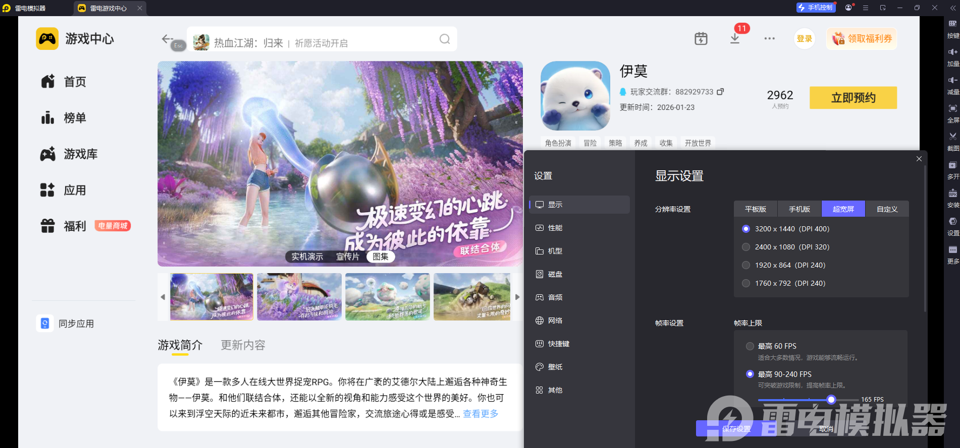 雷电模拟器运行《伊莫》时,4K大屏能完整呈现伊莫天使耶的精致建模与技能特效,天使耶的白毛纹理、闪电技能的光影细节都能清晰展现,游戏场景的色彩与层次更饱满,观看天使耶释放技能、移动滑行的画面更具视觉美感,比手机小屏更能感受角色与场景的设计质感。