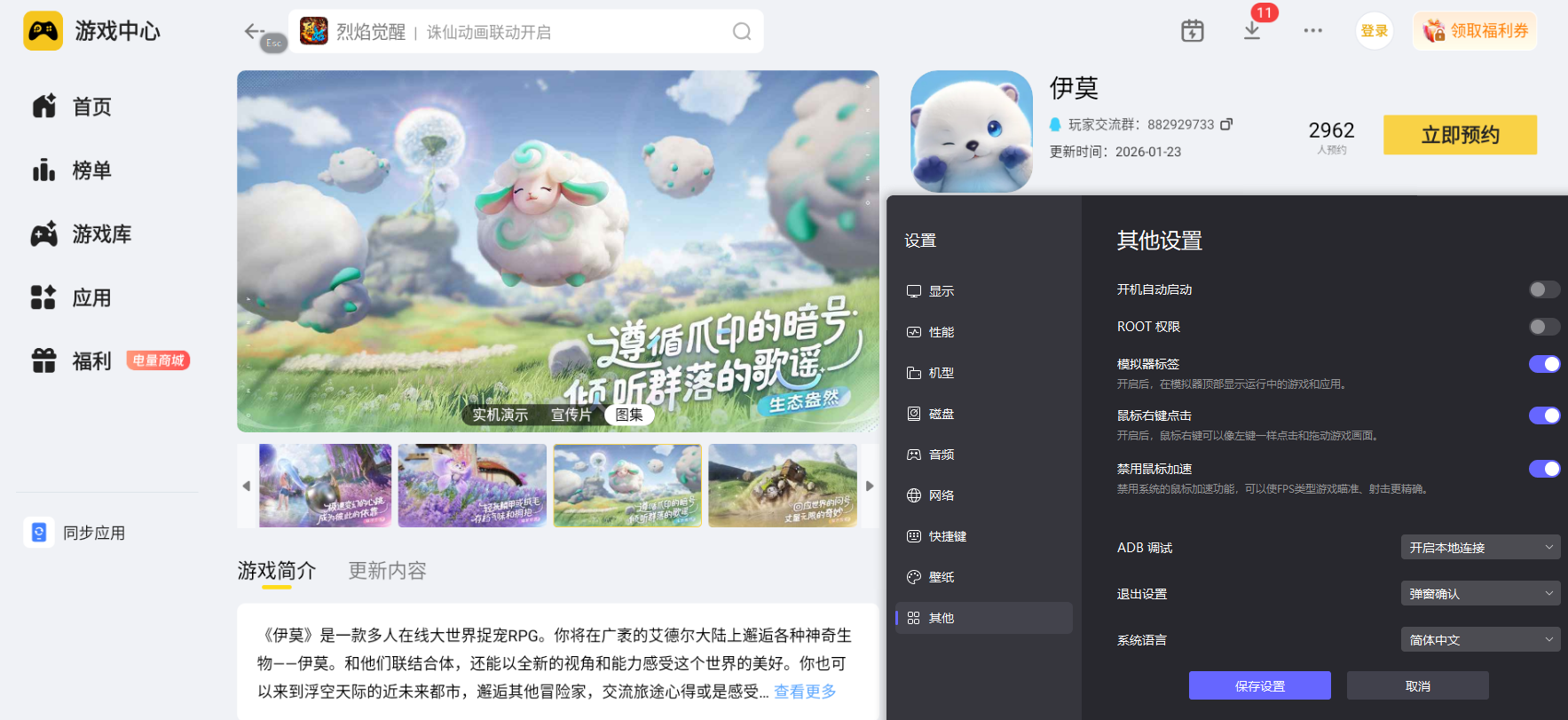 雷电模拟器的键鼠操作适配《伊莫》的战斗逻辑,操控伊莫天使耶的滑行、疾冲位移更精准,点击释放闪电标、雷电场等技能更直接,自定义按键还能快速触发核心技能。战斗时能灵活把控天使耶的技能释放时机与走位节奏,让操控角色参与冒险、战斗的过程更顺手。