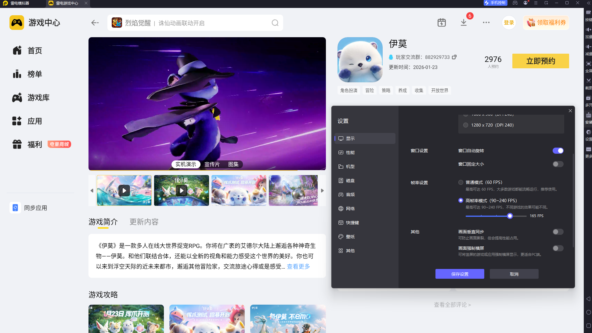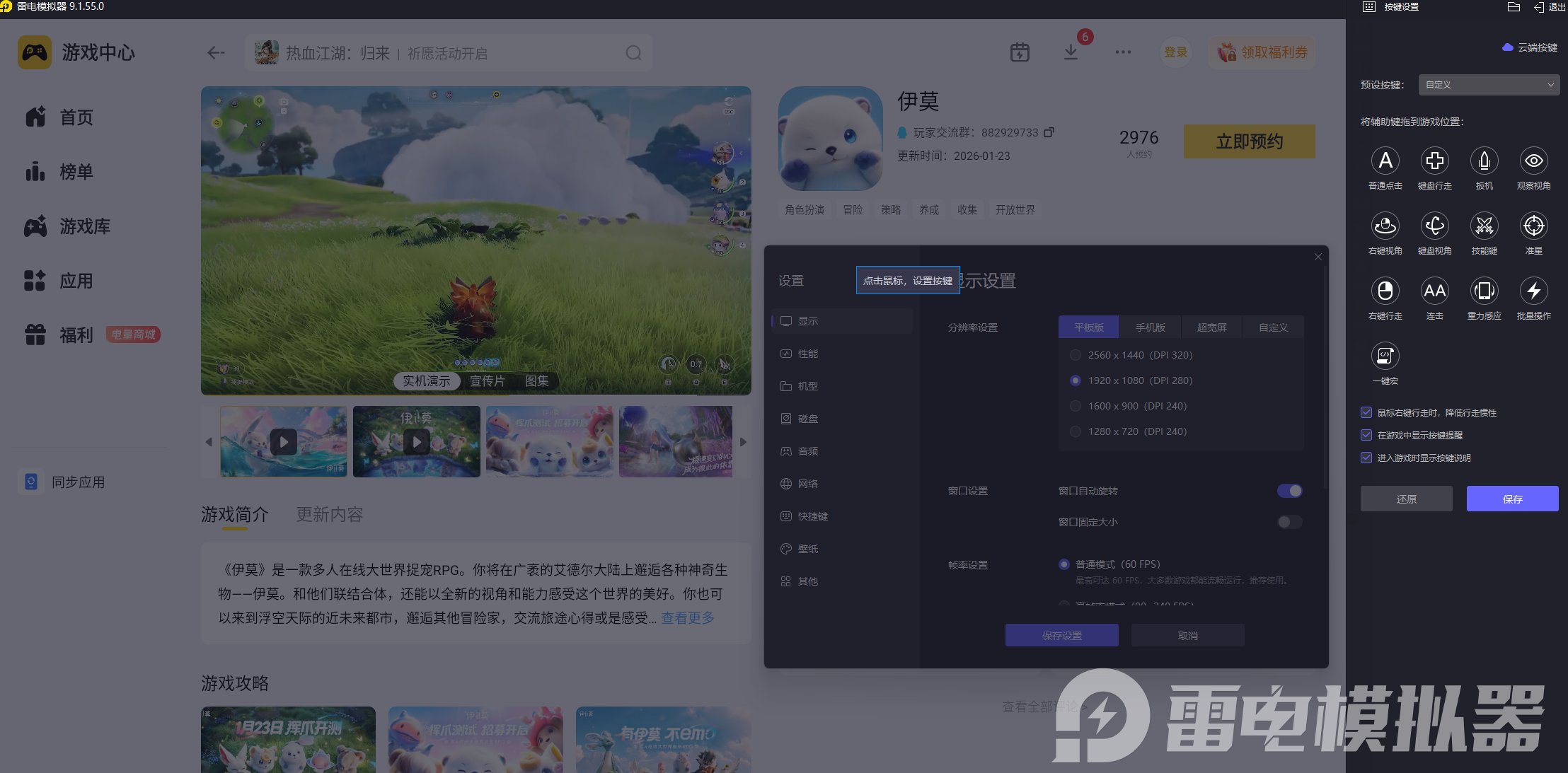 推荐各位使用雷电模拟器游玩这款游戏,最大限度的提升游戏的兼容性,增加游戏的各方面表现,在画面上能达到4K,帧数能到达165的超高帧数,相对于手机等移动端,游戏体验只增不减。游戏支持超宽屏游戏,大屏幕操作伊莫的对战效果更好,能更好的展现游戏的画面,展现游戏的特效。