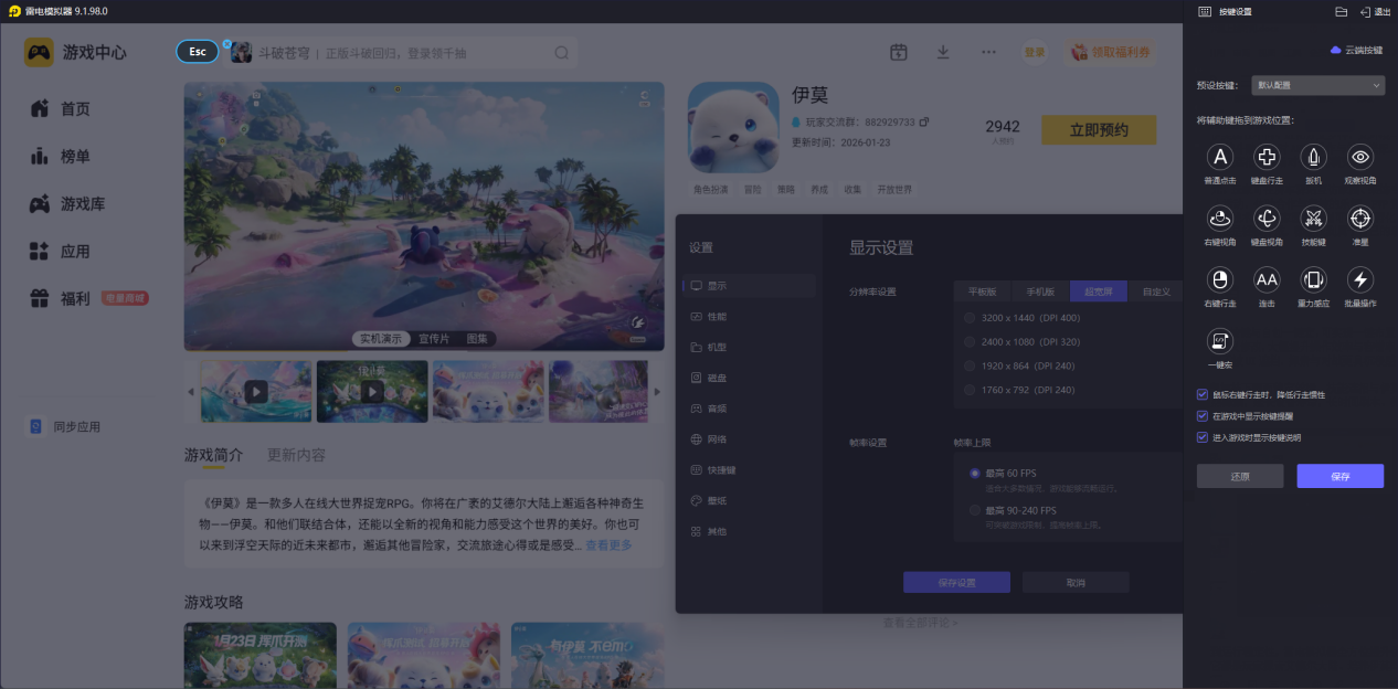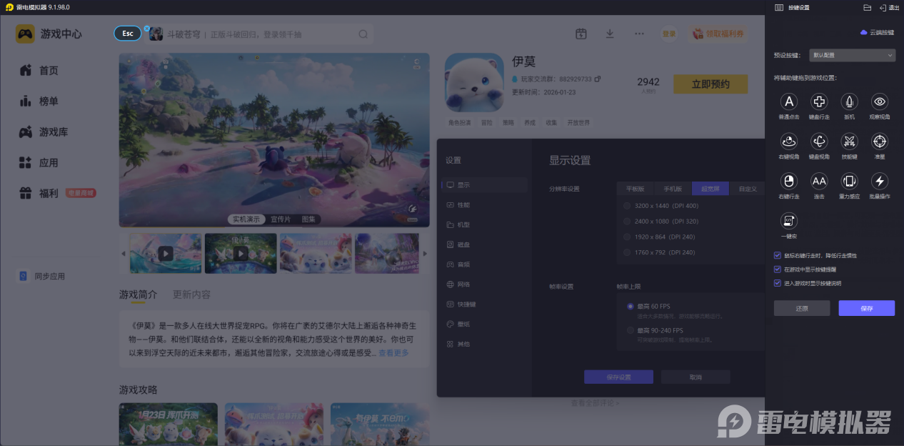 雷电模拟器为伊莫深度适配,自带丰富默认按键与自创一键宏,可实现一键布置、一键撤退等极限操作,不满意还能轻松自定义修改,大幅提升操作效率与容错率。超宽屏设计让立绘细节更清晰,战斗视野不被UI遮挡,探索与对战更具沉浸感。