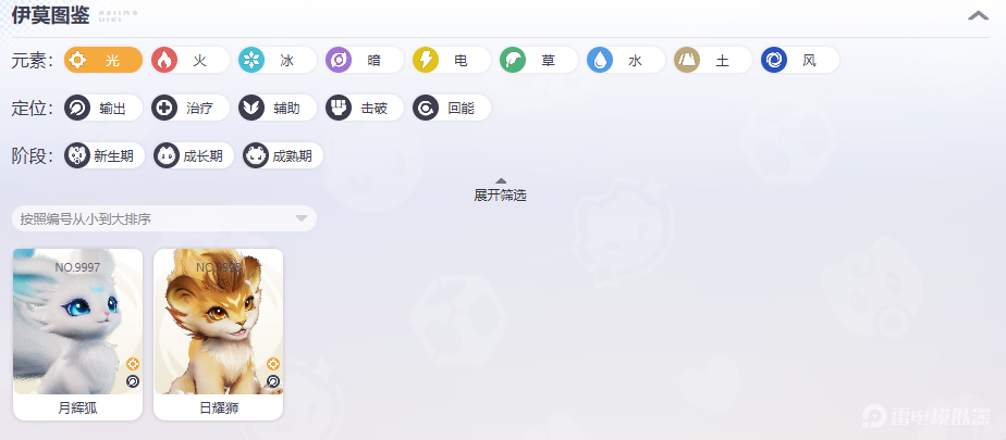 光系仅包含月辉狐与日耀狮,开局赠送,主线进化。与暗系互克,能高伤压制并驱散暗系负效。