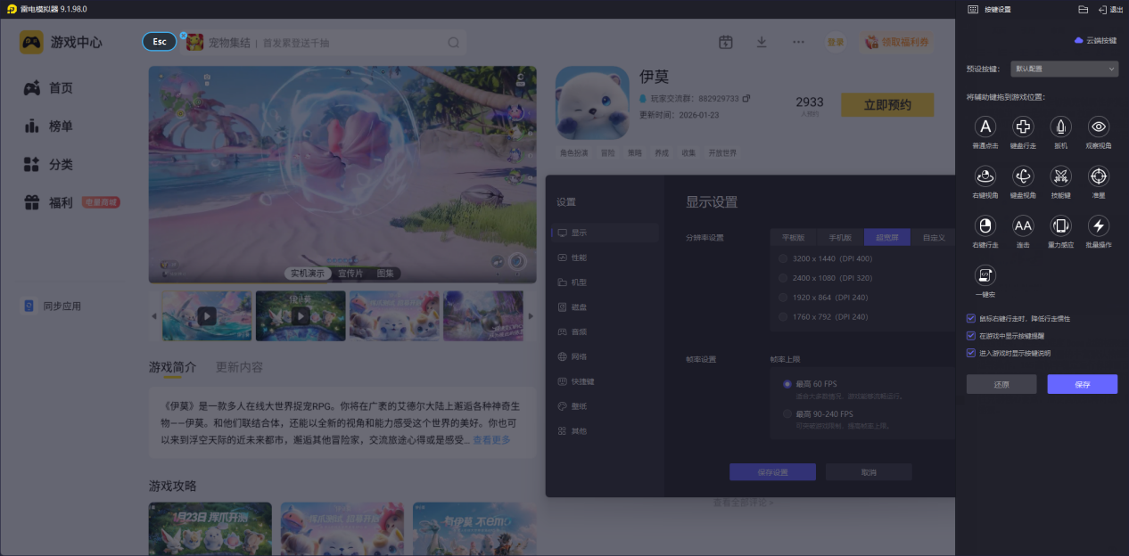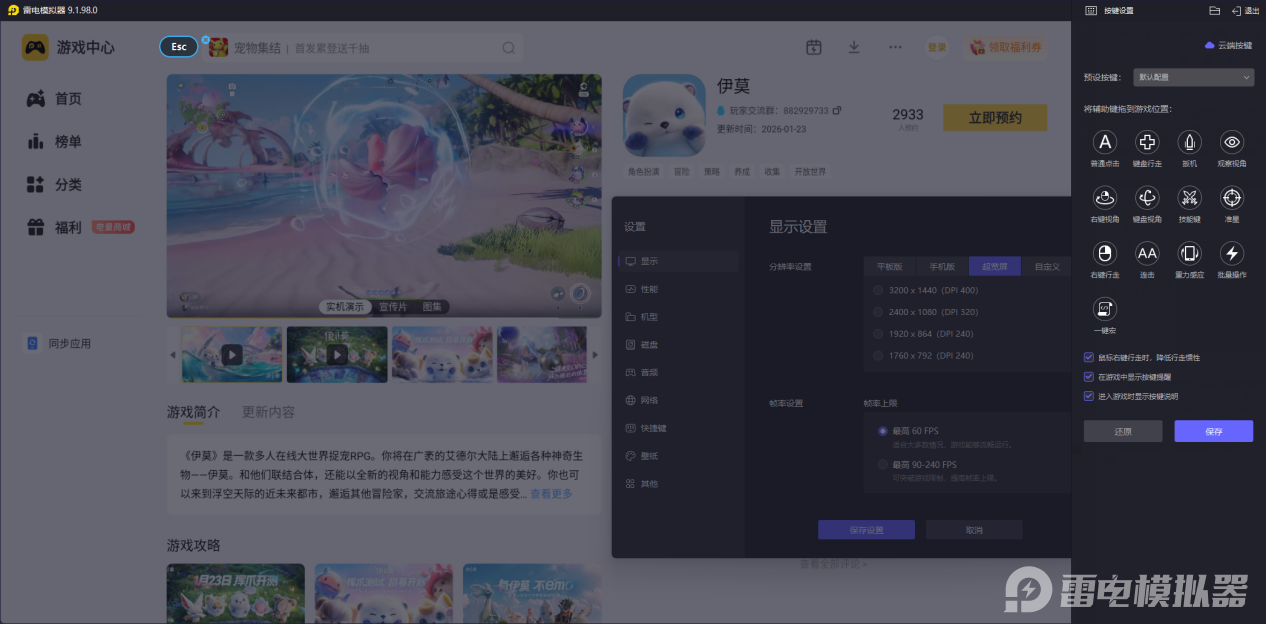不管是PVP对战中的即时形态切换,还是高难度Boss战的极限连招释放,伊莫对操作响应速度与稳定性要求较高。雷电模拟器的丰富默认按键的一键宏功能,可轻松实现一键布置、撤退等操作,165高帧率稳定运行保障画面丝滑,还能避免手机发热,让玩家专注于属性克制策略与战斗操作,无需担忧设备问题。