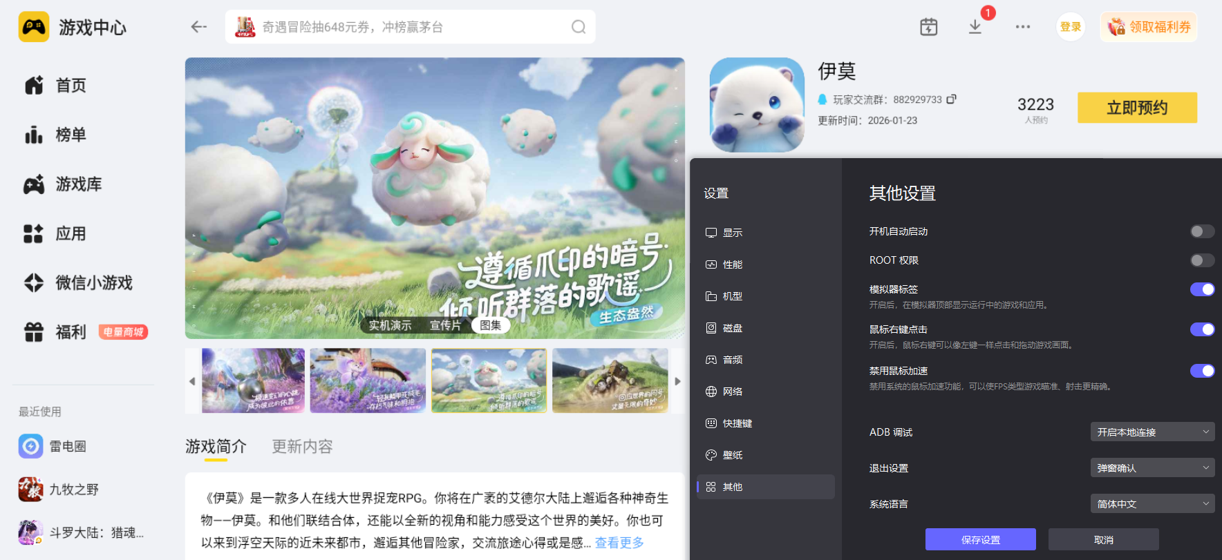 三、雷电模拟器游玩《伊莫》的画面与操作适配体验